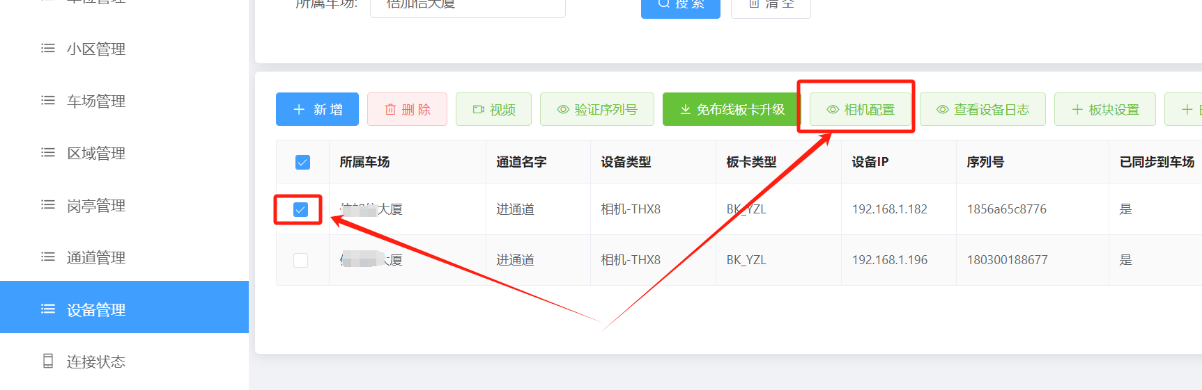 4、設(shè)備管理中添加設(shè)備,選擇華夏相機,相機ID在則通過第2步的一卡通調(diào)試工具讀取。
